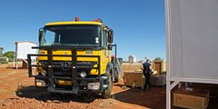 Das Technikerteam ist vor Ort. Heute wurden die Kisten per Kran in die Sternwarte gehoben.